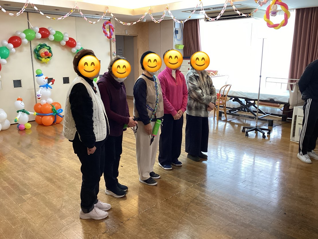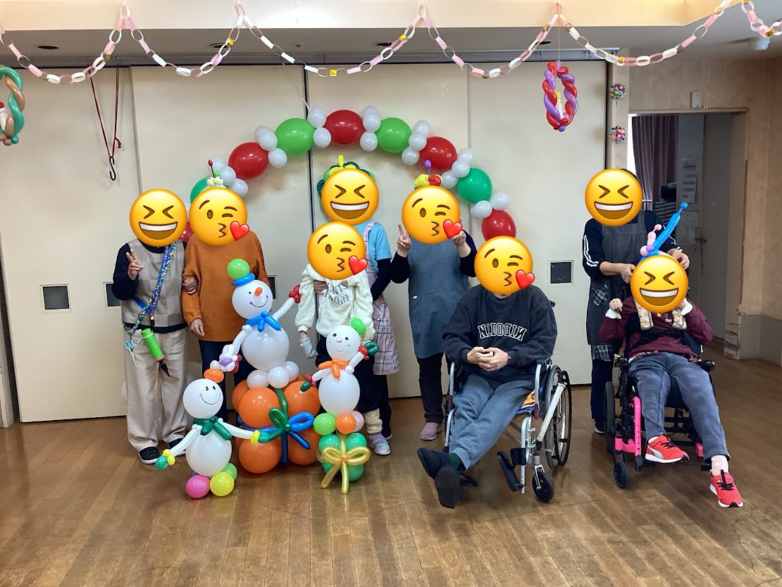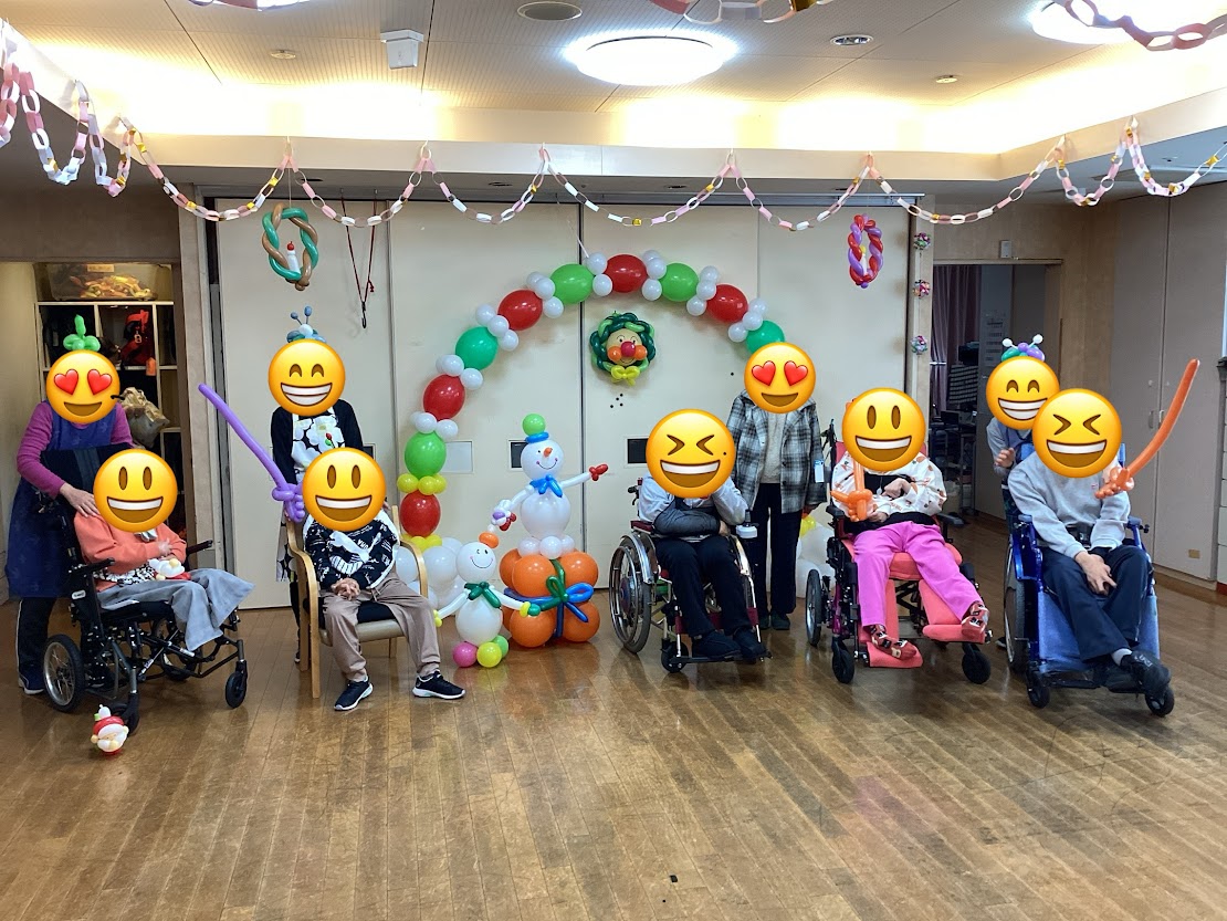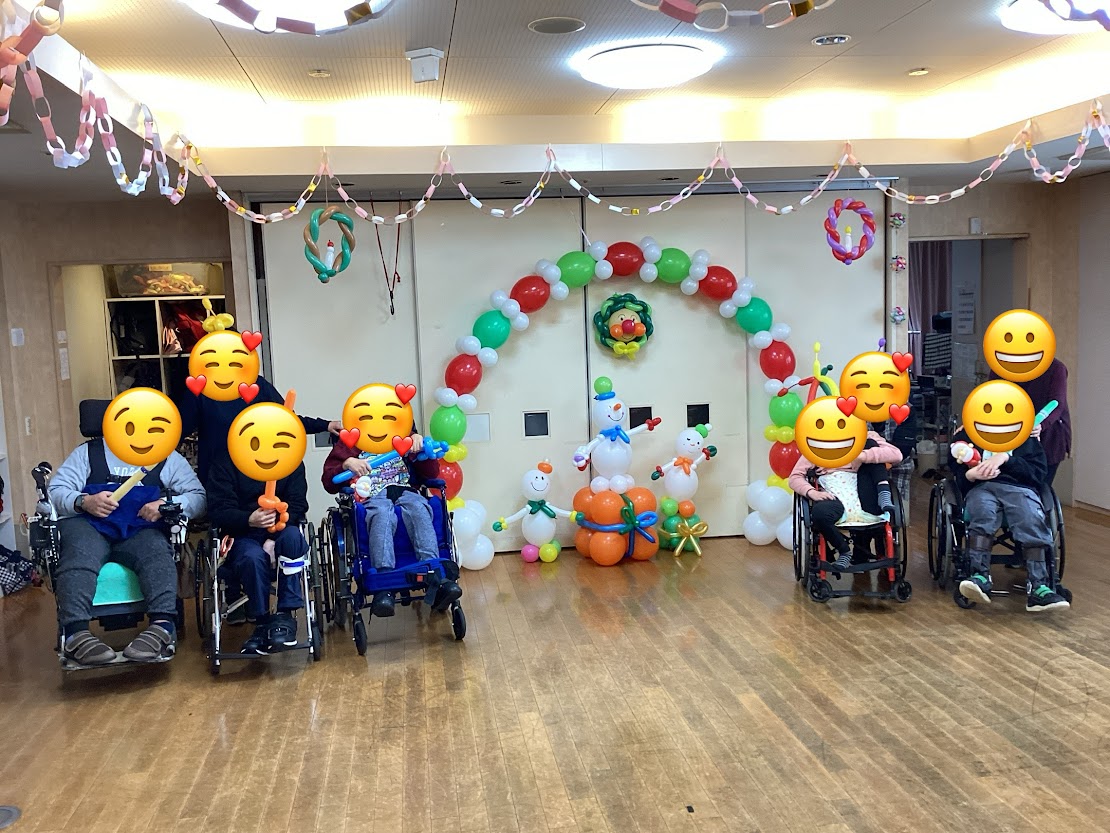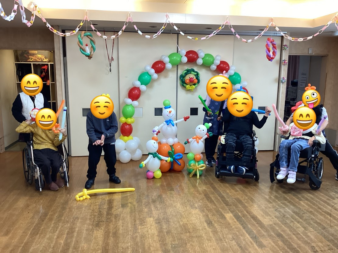 12月23日に【クリスマス会】を行いました。 当日はボランティアさんたちによる、バルーンアートや、ビンゴゲームをしたりと楽しく過ごしました。